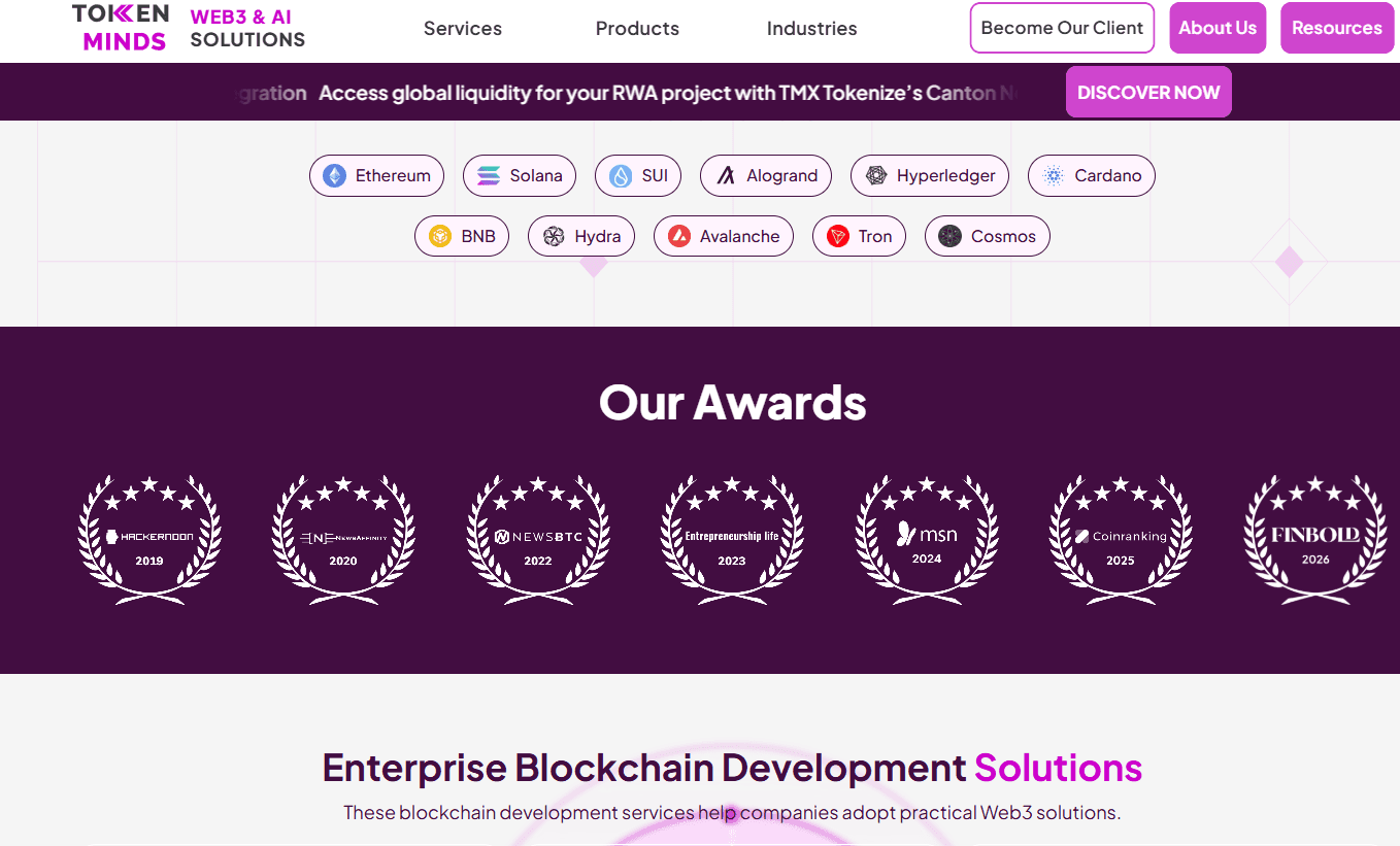 Website: tokenminds.co | Founded: 2017 | Location: Singapore | Model: Custom enterprise