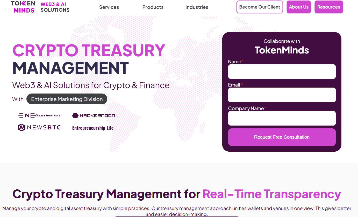 Enterprise smart contract security: TokenMinds. Audited contract-level custody with AI treasury oversight across multiple networks.