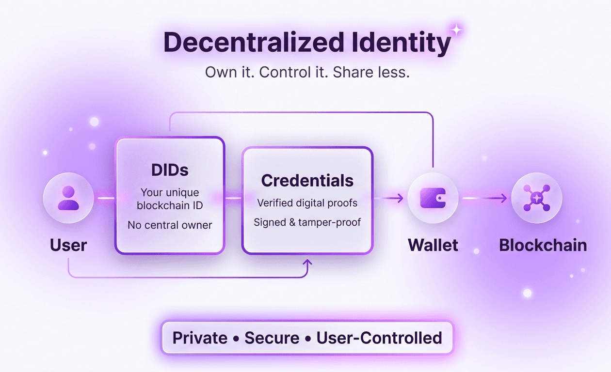 Decentralized identity lets people own their credentials without a central authority. You hold them in a digital wallet. A cryptographic key tied to a blockchain proves your claims. No server in the middle. No company that can lock you out.