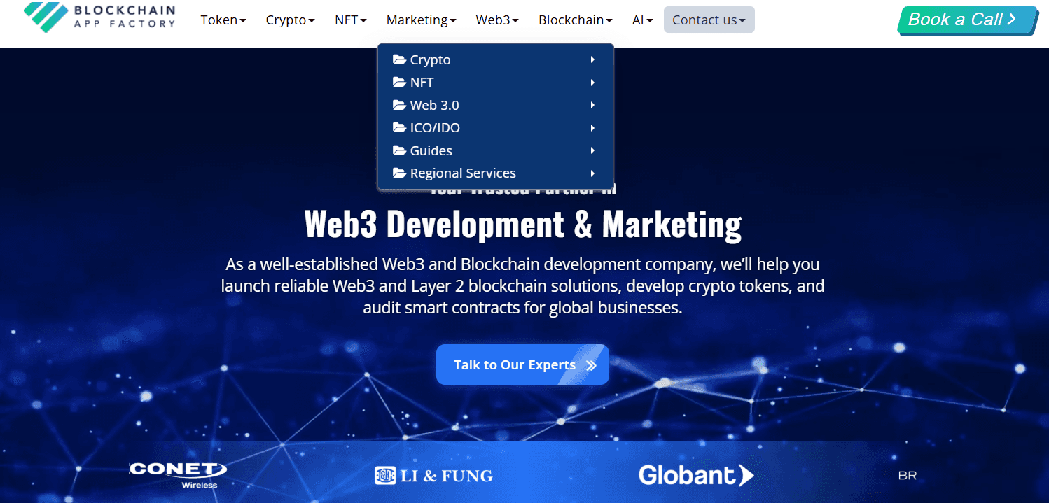 Blockchain App Factory is a crypto marketing and development firm with a dedicated IDO marketing service page. Their IDO marketing covers brand visibility, SEO, email, PPC, social media, influencer outreach, and community building. They focus on DEX projects that need fundraising support.