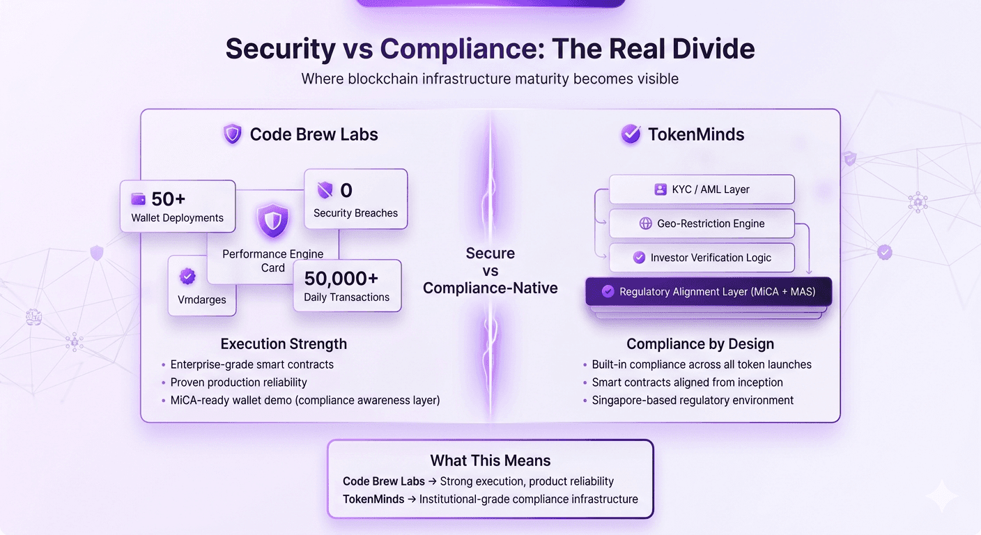 Volume and speed favor Code Brew Labs. Depth and compliance favor TokenMinds. Match your project to what you actually need before you commit.
