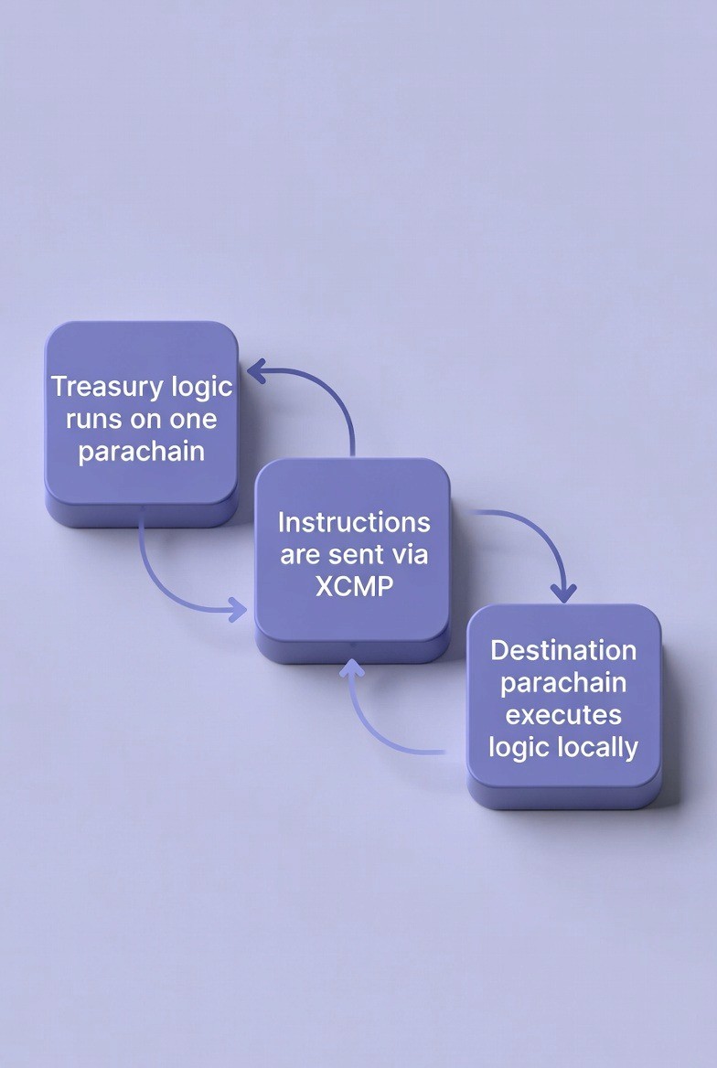 XCMP works best when messages are sent in a clear, controlled way, and when chains share security. For instance, a Treasury Operation on one parachain can instruct another to transfer funds, create records, or call a smart contract function. If the Relay Chain approves the message, signed by the right key, all parachains will process it consistently.