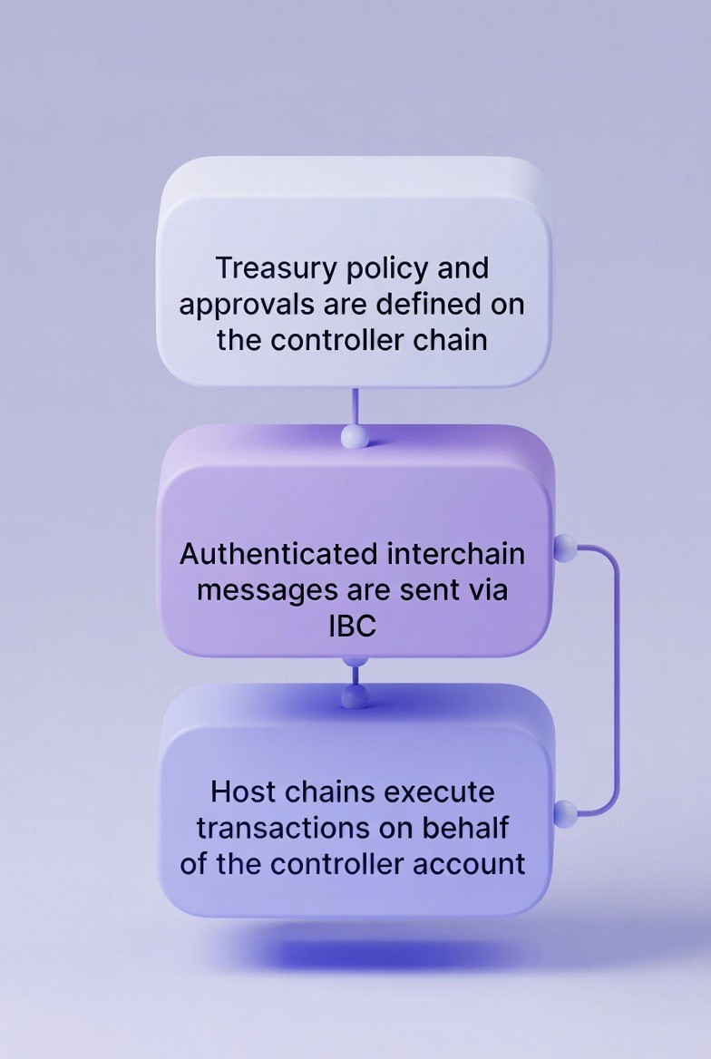 How ICA works is straightforward from an architectural perspective. A controller blockchain sends a message to a host blockchain. That message contains instructions for an account on the host chain. The host chain executes the instruction as if the account holder had submitted it directly. The result is returned to the controller chain. No asset bridges are needed. No external intermediaries are required.