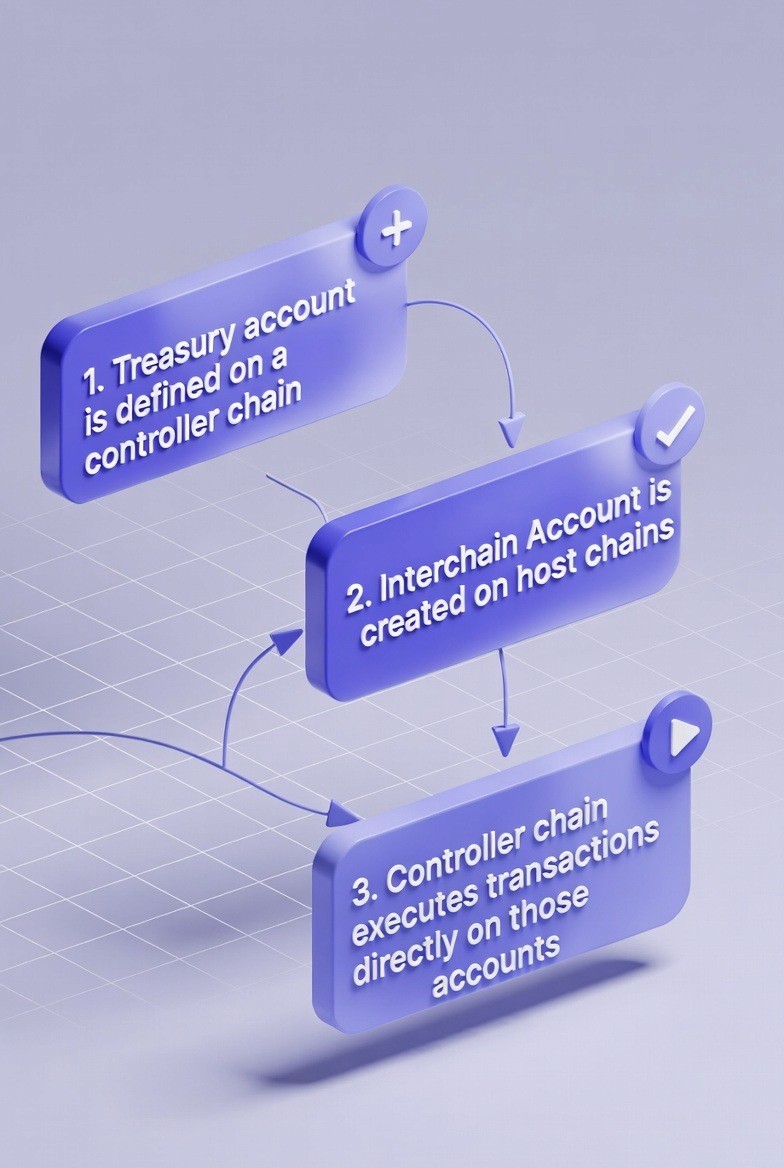 Cross-chain treasury control refers to the ability to execute treasury actions across multiple blockchains using a single governance and approval framework, as discussed in this guide. The key principle is simple: assets do not move between chains. Instead, authenticated instructions are delivered to the chains where assets already exist.