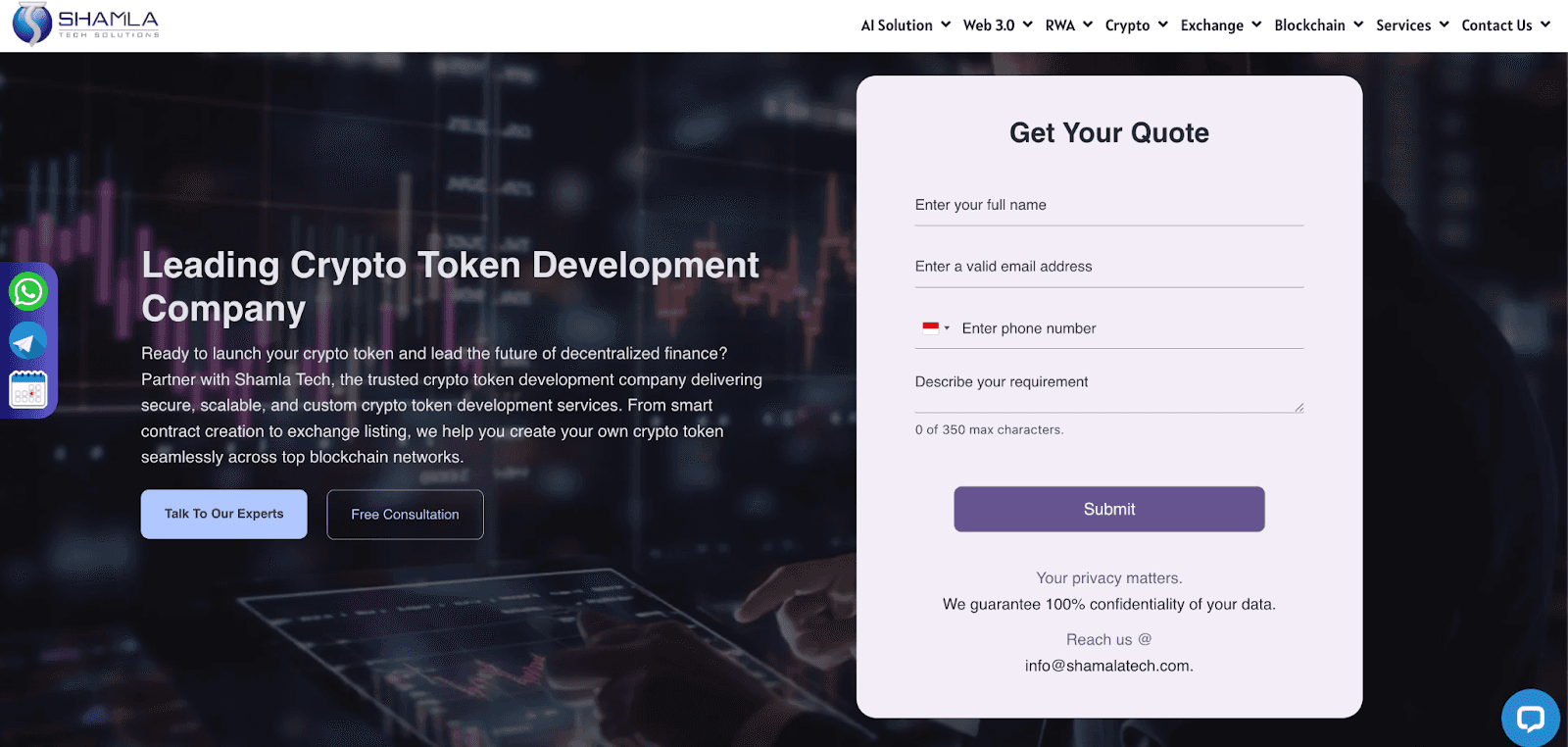 Shamla Tech develops utility, security, governance, payment, asset-backed, reward, and meme tokens. The company also supports Ethereum, BSC, Solana, Tron, and Polygon. Wallet compatibility is part of the offer. Capped supply features appear too. Token listing and launch support also appear. Post-launch maintenance is included as well.