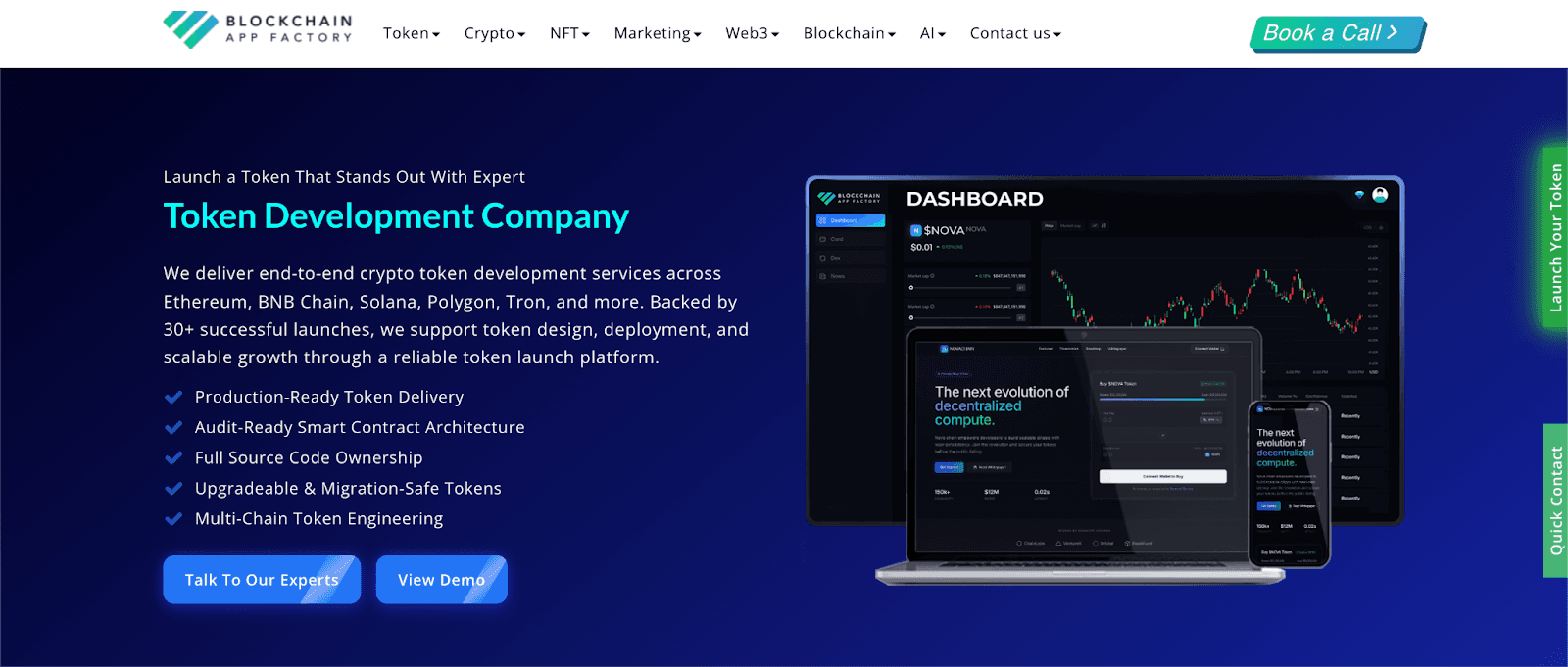 Blockchain App Factory develops Ethereum, Polygon, Tron, and TON tokens. It also covers ERC20, BRC20, BEP20, gaming utility, and fan tokens. AI token development also appears in the wider service stack.  Smart contract work and token sale support appear too. That expands the offer beyond token coding alone.