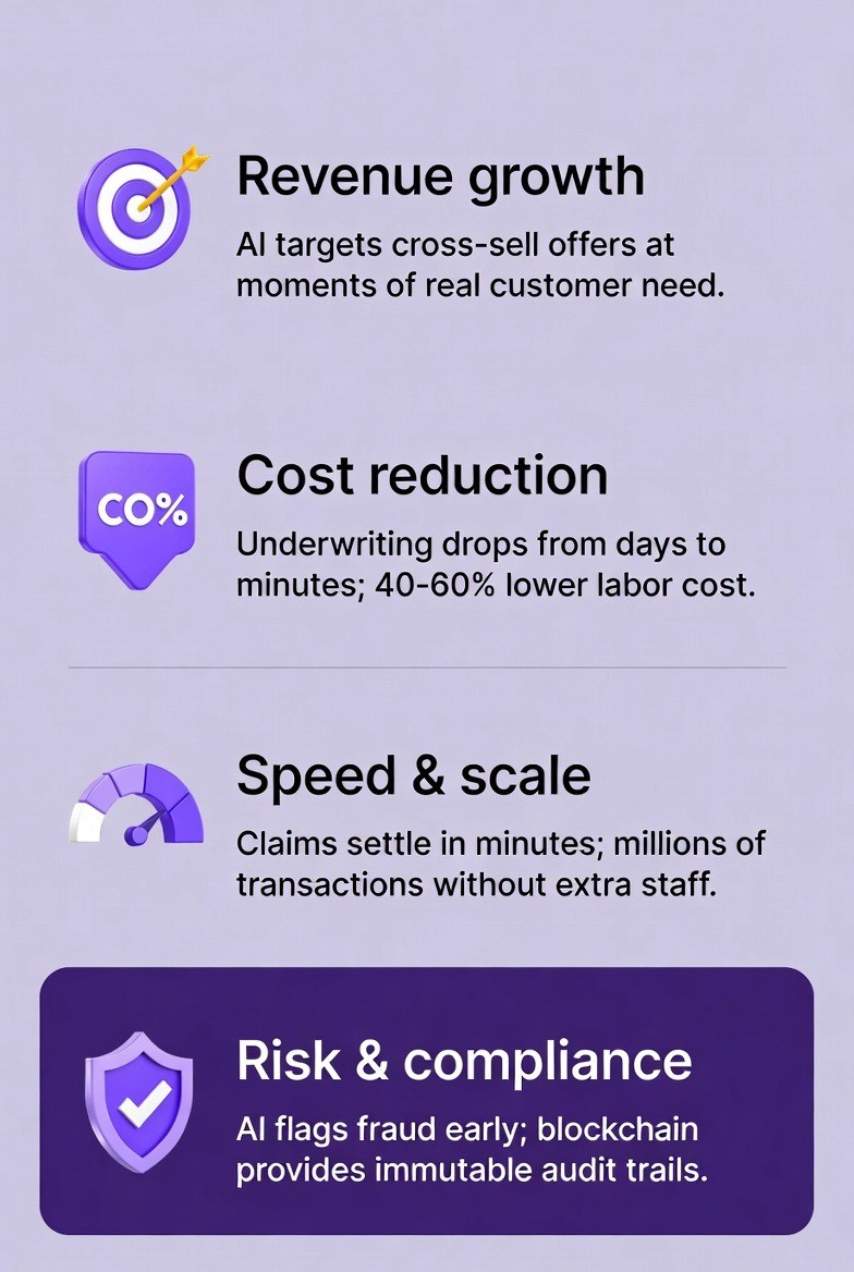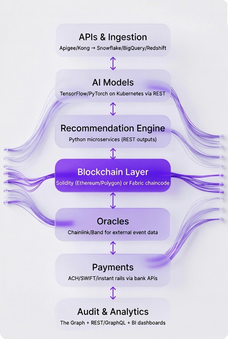 They enable automatic coordination of bank/insurer interactions, including automated underwriting and claims validation, through automation of all reconciliation processes; ai provides immediate decision-making capabilities with blockchain providing immutable record-keeping mechanisms that prevent parties from disputing ai generated outcomes.