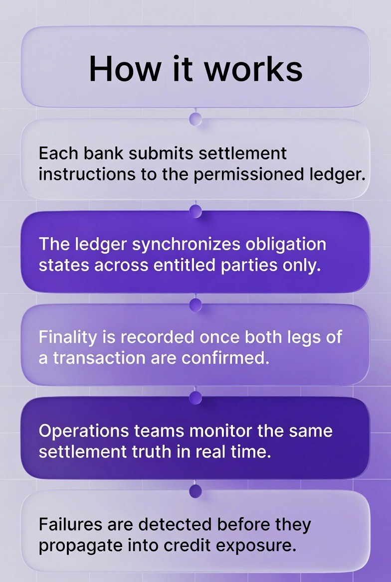 Reducing settlement risk across banks is no longer just a process challenge; it is a systems problem that requires shared execution without shared data. Traditional coordination relies on delayed reconciliation, manual escalation, and bilateral controls that only react after failures occur.