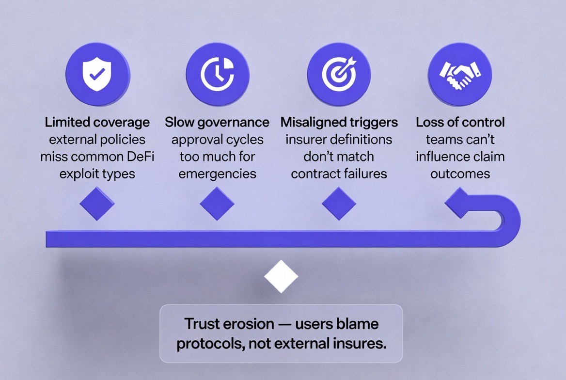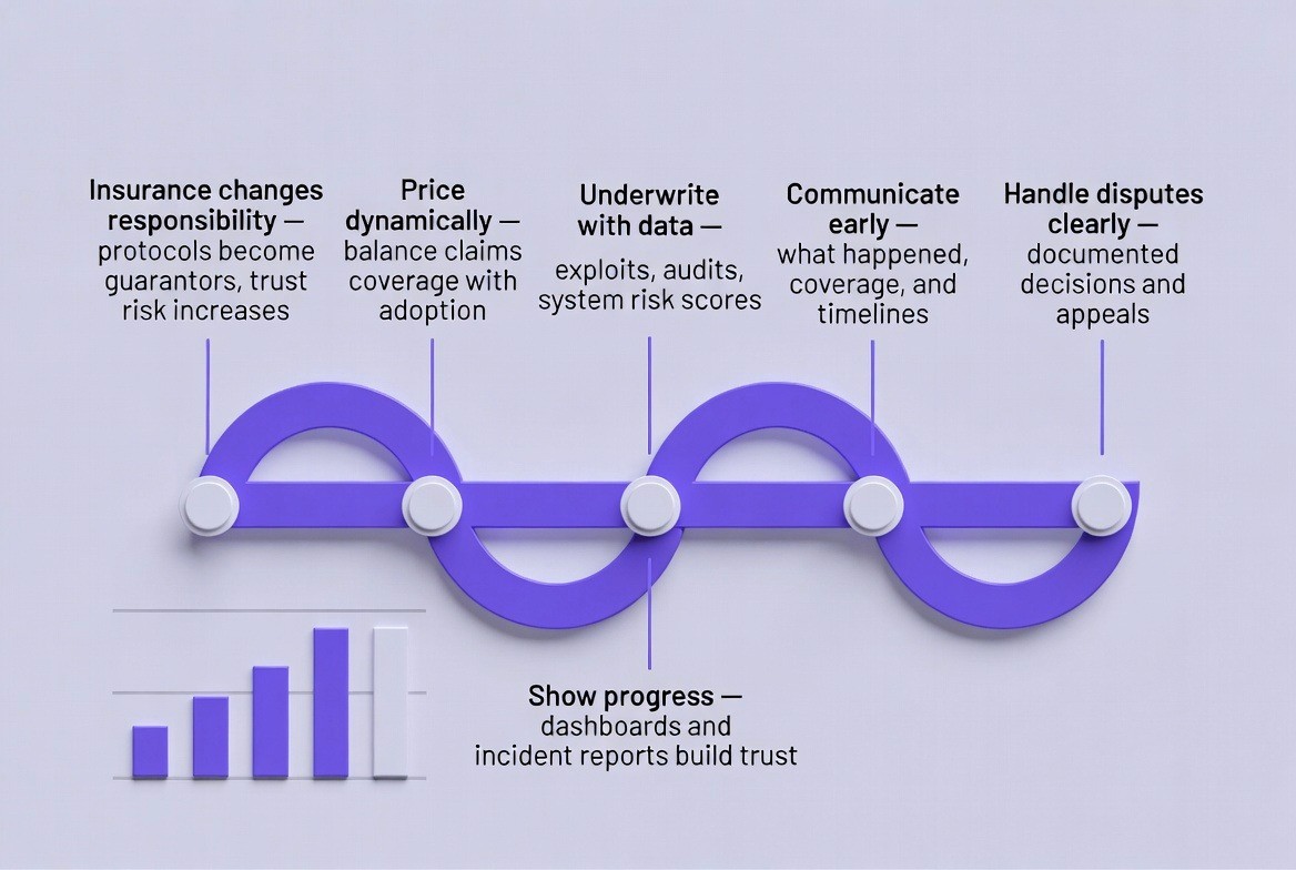 Insurance turns protocols into financial guarantors. This adds legal, operational, and reputational responsibility. Failure damages trust more than exploits.