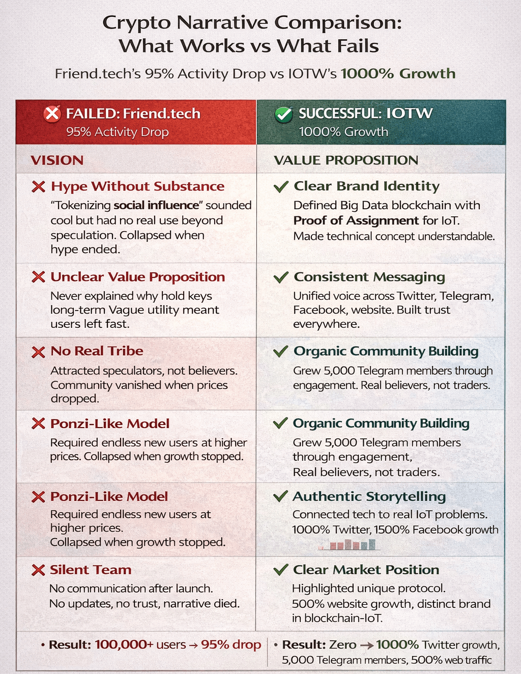 Before we dive into how to build effective narratives, let's understand why most fail. The crypto graveyard is filled with projects that had compelling whitepapers but couldn't translate technical innovation into sustainable adoption.