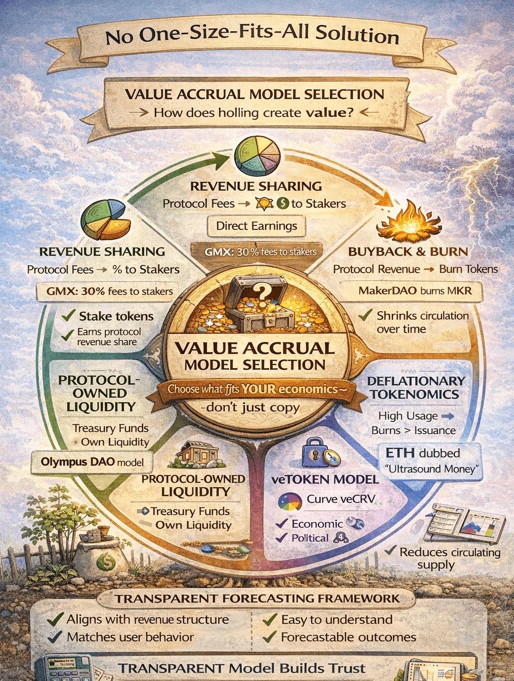 Your Value Accrual Pillar represents an economic model which illustrates the long term reasons for holding your tokens. Your Value Accrual Pillar transforms speculative investors into stakeholders through illustrating how the growth of your protocol will translate into increasing value for your token. If your Value Accrual Pillar is vague, then you will attract short sighted investments from people who will immediately dump their investment when they witness a negative trend.