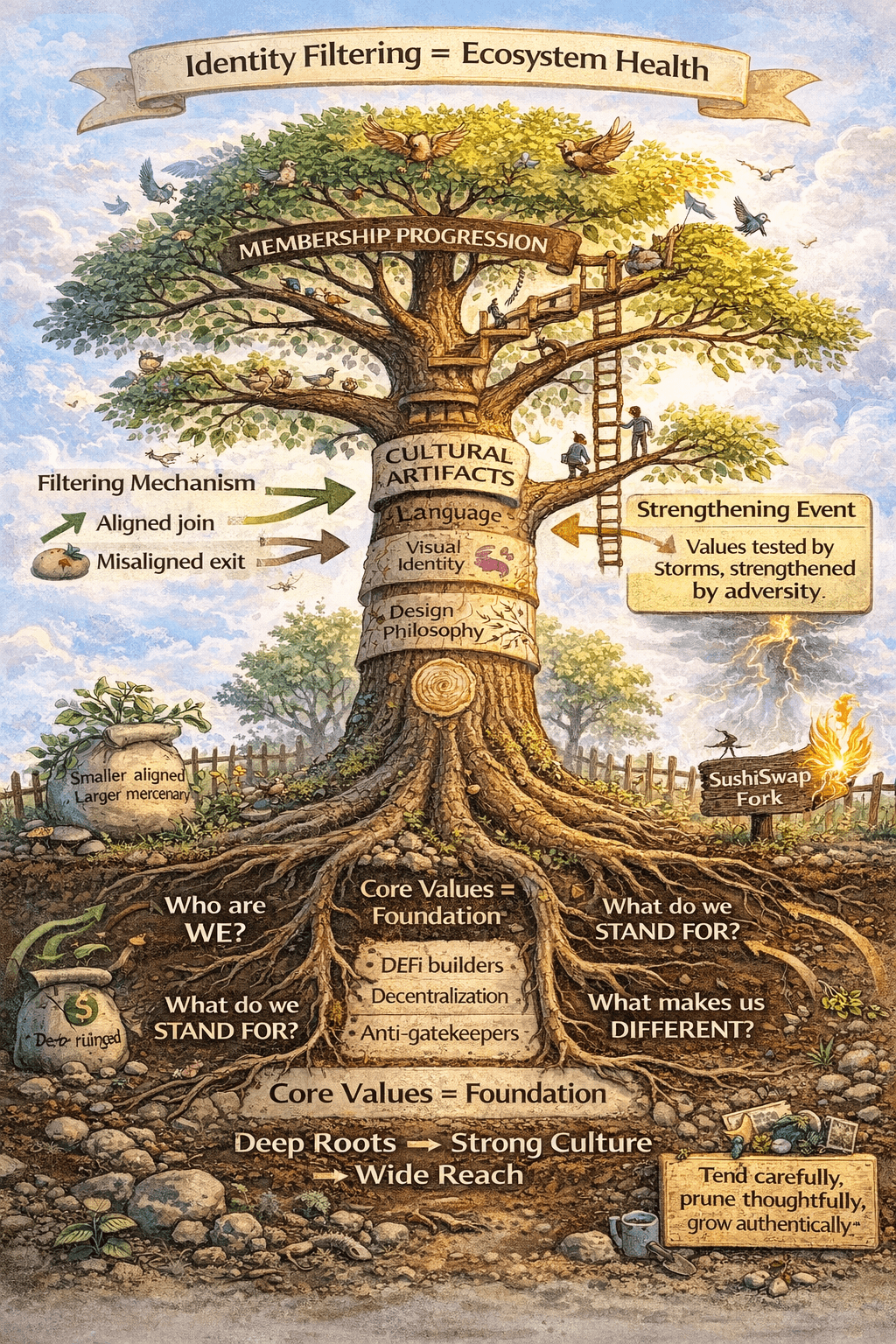 Uniswap has become one of the most powerful tribes in DeFi, without the need for an aggressive marketing campaign by way of defining its values in such a manner so as to attract like-minded individuals. Decentralized, permission-less access, open source development and composability are the guiding principles of Uniswap’s decision-making process. They are not just buzzwords; they represent the real values of Uniswap’s decision making processes.