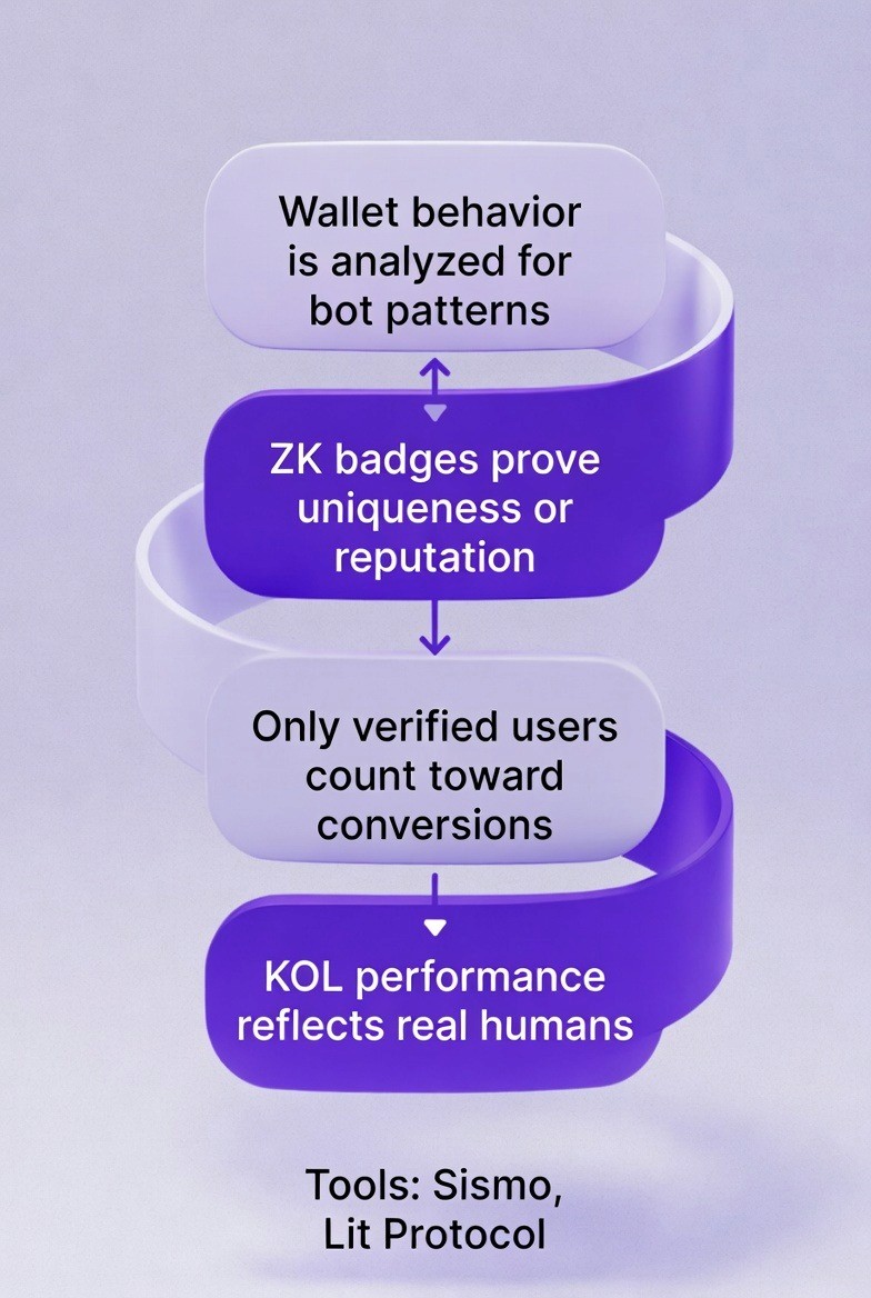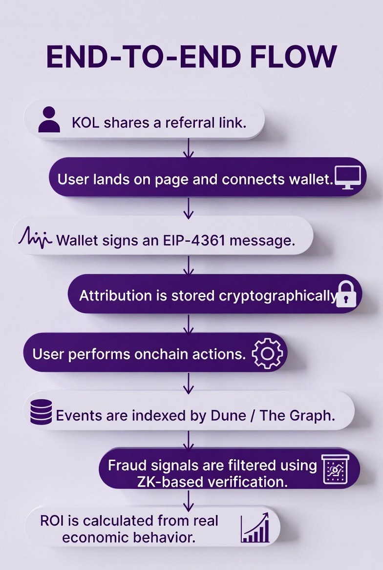 It means tying campaign results to verified onchain behavior instead of social engagement. By using wallet-based attribution, smart contract events, and cryptographic proofs, every conversion is linked to real activity that cannot be manipulated.