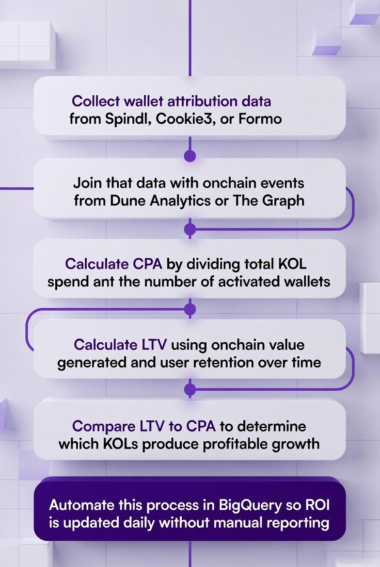 By comparing Cost Per Acquisition (CPA) from verified wallet activations with Lifetime Value (LTV) from onchain revenue. When attribution and fraud detection are in place, teams can confidently measure which KOLs drive profitable growth instead of hype.