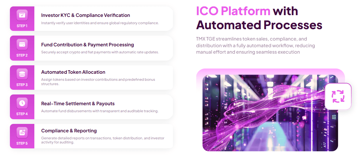 TMX TGE is TokenMinds' ready-built token sale platform. It handles the operational and compliance infrastructure that the Section 4(a)(8) exemption demands. You configure the rules. The platform enforces them on every transaction automatically.