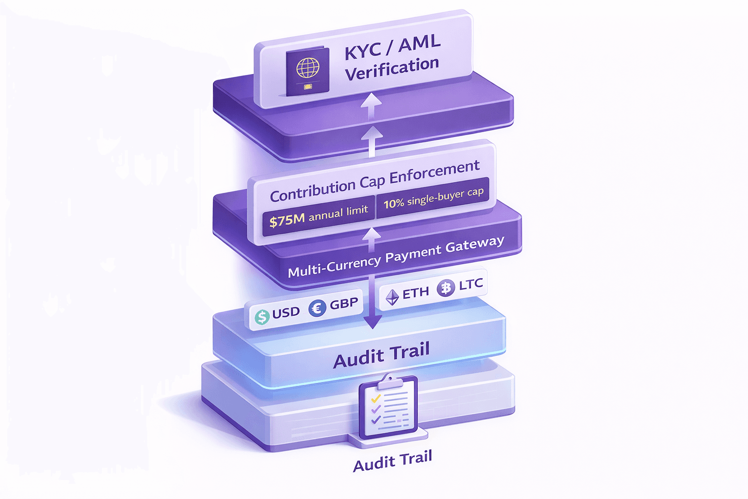 This is where most founding teams get stuck. Building a platform that enforces contribution caps, runs KYC at the transaction level, accepts multi-currency payments, and logs every entry with a full audit trail takes months of engineering work if you build it from scratch.