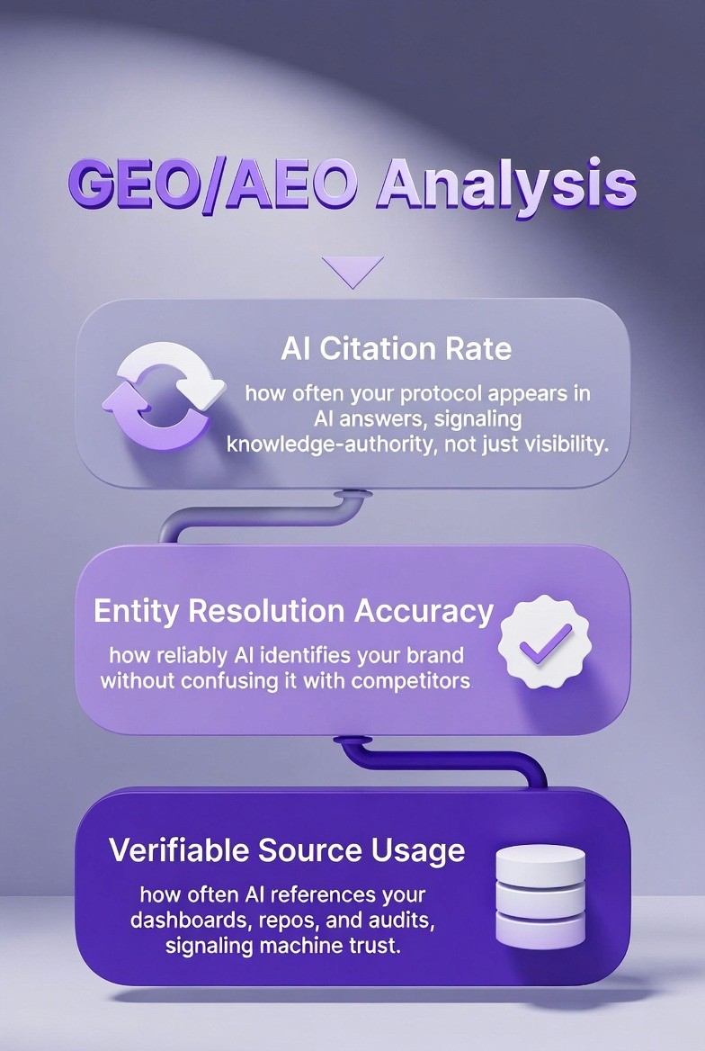 GEO helps your content get understood and cited by AI systems confirming facts and authority, while AEO helps your content appear as direct answers in search results like featured snippets and knowledge panels. Together, they ensure your protocol is not just visible but trusted in AI-driven discovery.