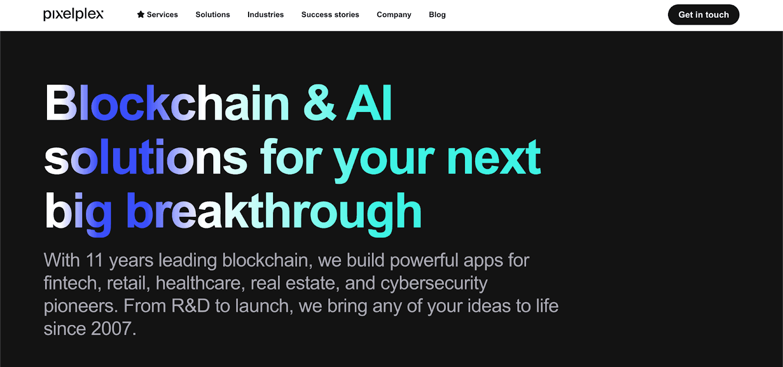 PixelPlex | pixelplex.io | Min Project Size: $50,000+ | Large enterprises, fintech, healthcare |