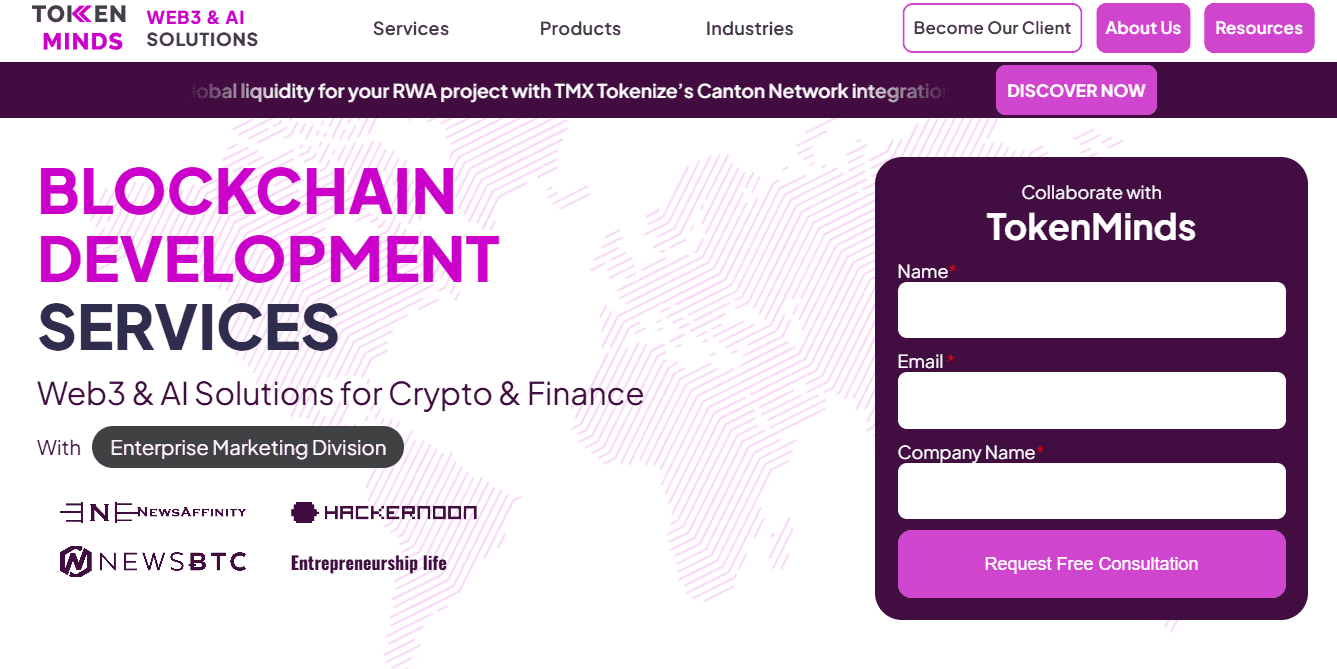 TokenMinds was founded in 2017 and operates from Singapore. It serves enterprises, financial institutions, and protocol teams that need blockchain infrastructure built and managed, not just tools. The client base spans commercial banking, top-tier crypto exchanges, and large-scale consumer platforms.