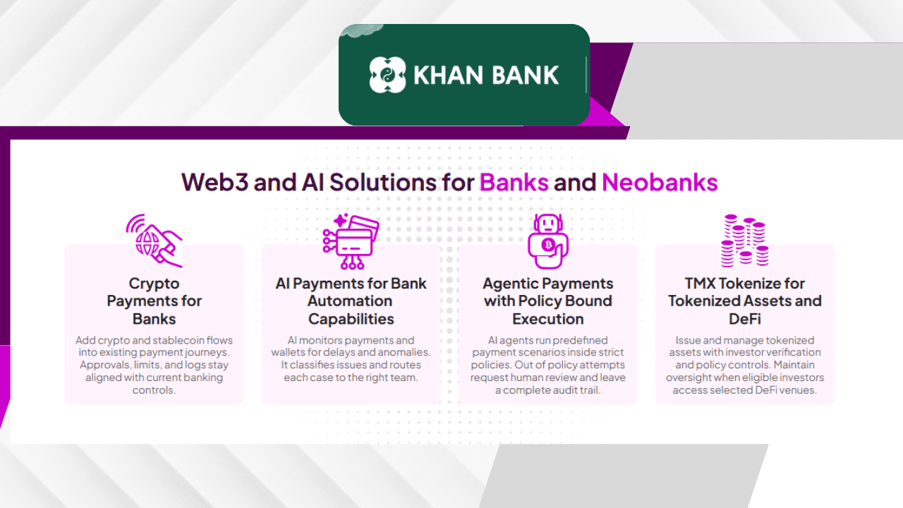 TMX Agentic Finance is an AI tool for banks. It runs on the same system used in the Khan Bank build.