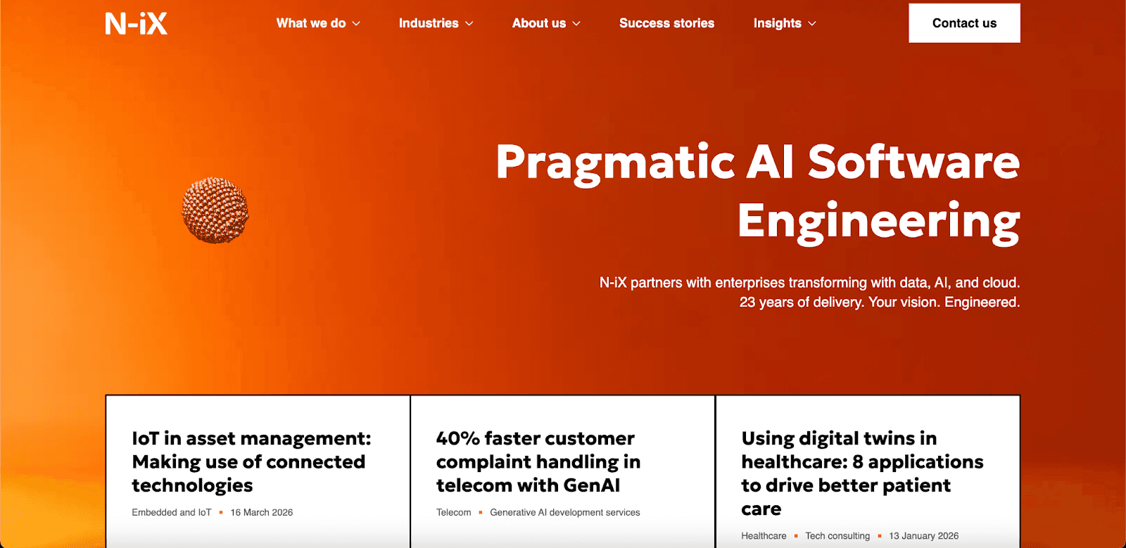 Security and compliance are also part of the message. N-iX highlights a multi-layered security approach, ISO 27001 certification, and GDPR compliance. That gives it a stronger fit for firms that need AI work tied to internal controls, risk review, and long-term operations.