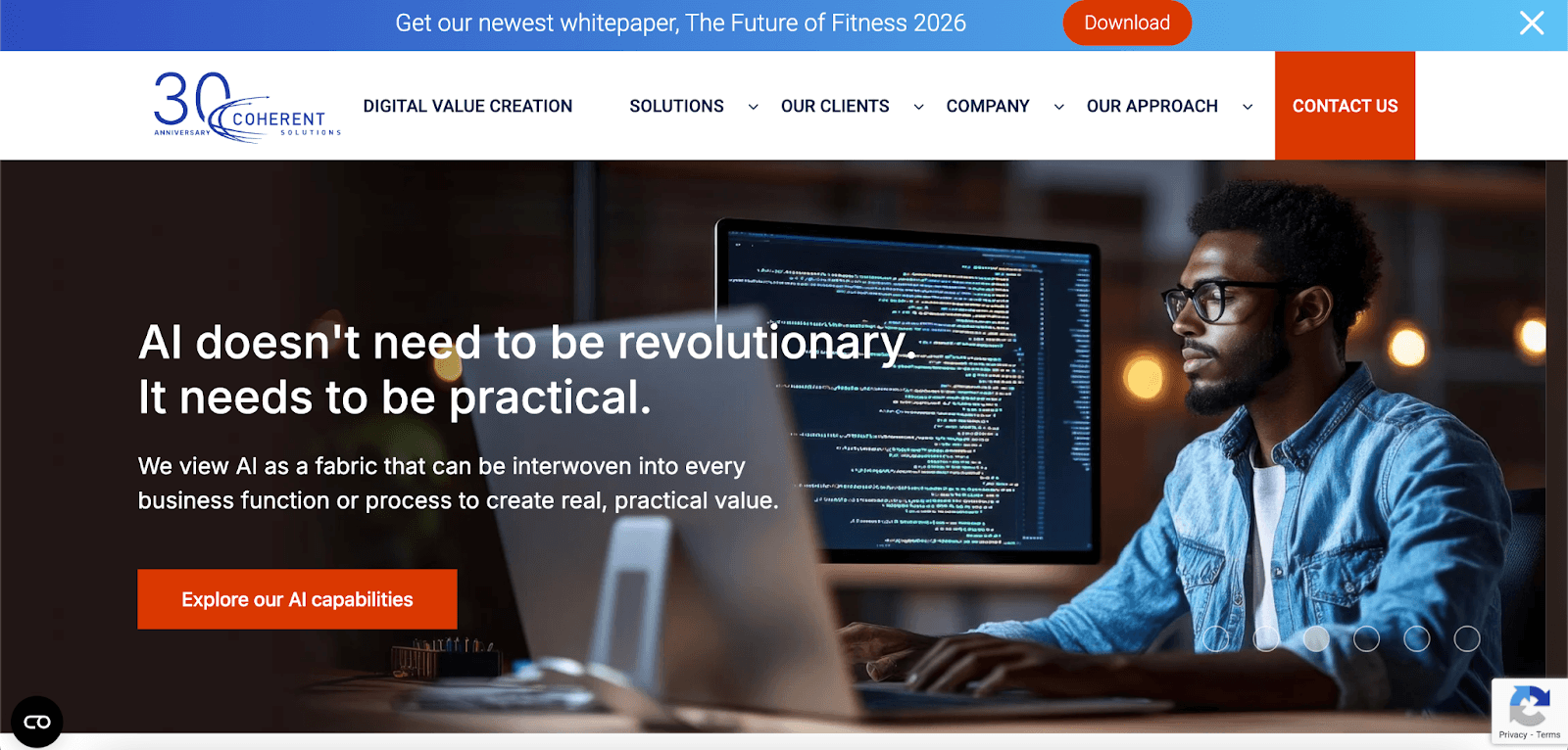 The company also supports a more embedded delivery style. It describes a collaborative and transparent working approach with regular updates and feedback loops. In a published fitness case, Coherent worked side by side with product and IT leaders, helped drive 150 percent growth in unique app installs, and improved release velocity by 15 percent in the first six months.
