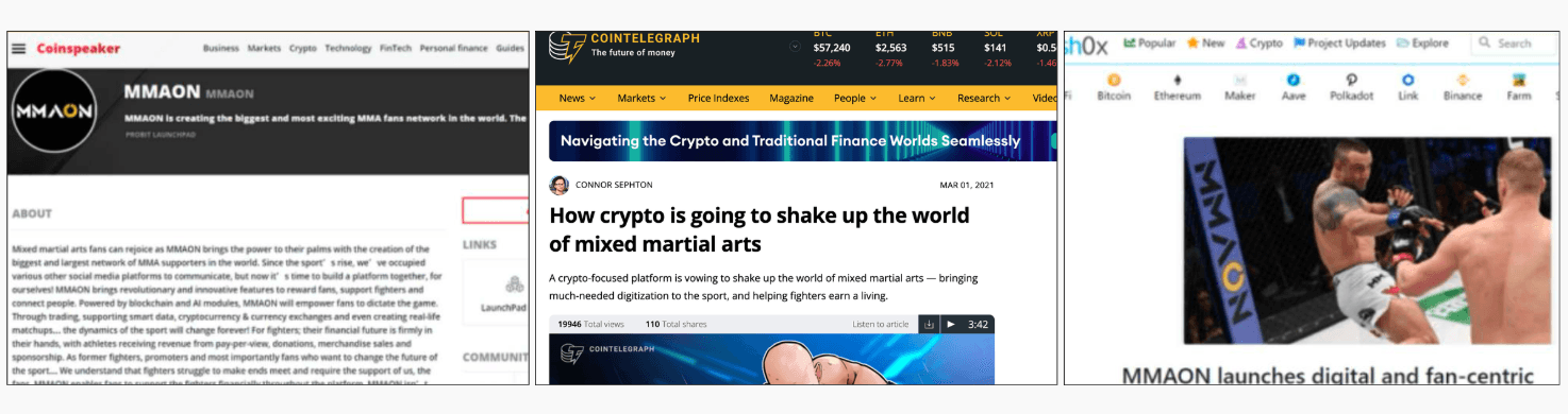 MMAON needed a comprehensive marketing strategy to launch their token sale and build a strong community around the platform. The challenge was to gain visibility and trust among MMA fans and crypto investors. Ensuring a successful token sale and long-term platform engagement.